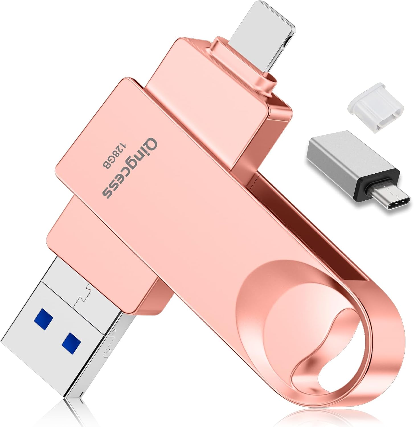 Amazonにて「【アプリ不要 アルバムから直接保存 】 128GB フラッシュメモリ IOS/Android/PC USB3.0高速 4 in1 Phone usbメモリー タイプc ストレージ容量不足解消 ipad usb USB-A、USB-C、ios コネクター 写真保存 usb、Phoneに挿してバックアップ 写真沢山撮る人に必要な外 付けusbメモリ!」が特価