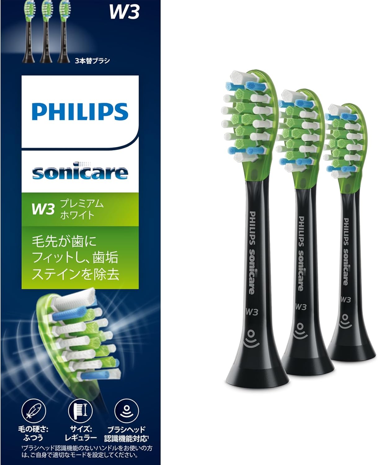 5400円が3238円!フィリップス 替えブラシ ソニッケアー プレミアムホワイトレギュラー (3本) 正規品 W3 HX9063/96 ブラック #タイムセール #特価 #PR
