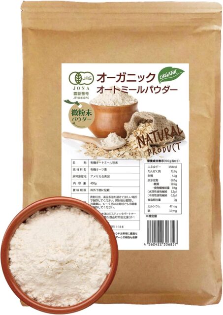 1480円が1258円!オートミール オーガニック パウダー 1袋 400g 有機 JAS 超微粒子 粉末 無添加 国内工場 大容量 加熱殺菌 アルファ化 もっちり 食物繊維 #タイムセール #特価 #PR