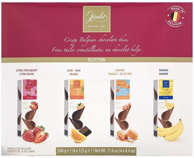 Amazonにて「Hamlet Belgian Crispy Chocolate Assortment, 4.4 oz (125 g) x 4 Boxes」が特価1800円で販売中です。