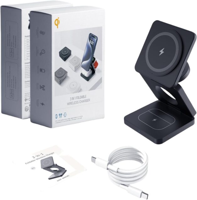 Amazonにて「Magsafe Charger, iPhone Wireless Charger, Apple Watch Stand, Apple Watch, 3 in 1 Magsafe Charging Stand, Qi Magnet, Smartphone Stand, iPhone 15/14/13, Galaxy iWatch, AirPods Simultaneous Charging」が特価