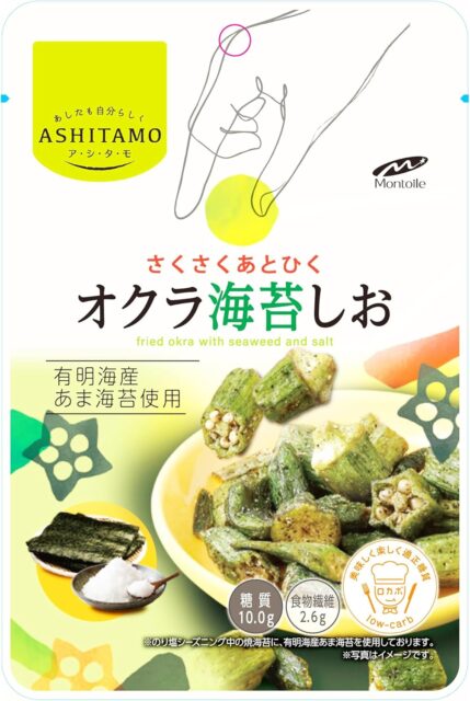 Amazonにて「Montoir ASHITAMO Crunchy Okra Nori Shio 0.6 oz (18 g) x 10 Bags」が特価1770円で販売中です。