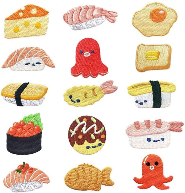 Amazonにて「YIBOOOM Embroidered Patches, Iron On Patches, Small Size, Crafts, Boys, Girls, Kindergarten, Nursery, Elementary School, Admission, Cute, Stylish, Iron Patch (Sushi – 15 Piece Set)」が特価