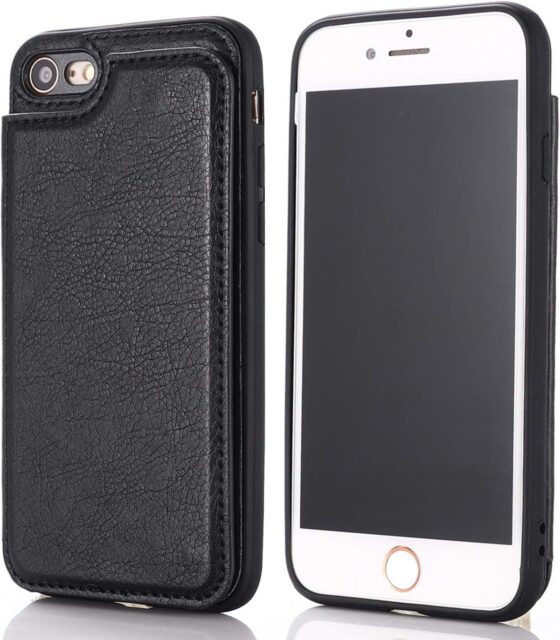 Back Card Notebook Type Case for iPhone SE (2020) / SE2 (2nd Generation) / iPhone 8 / iPhone7 Compatible APPLE Smartphone Back Cover Case Notebook Type Black Handmade Wallet Type Magnet Thin”]