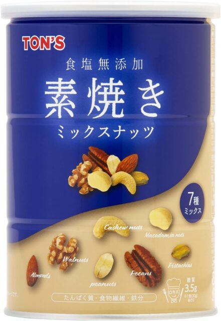 Amazonにて「東洋ナッツ食品 素焼きミックスナッツ缶 350g」が特価904円で販売中です。