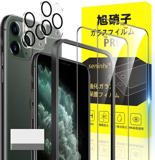 Amazonにて「Compatible with iPhone 11 Pro Max Glass Film with Guide Frame, Fingerprint Prevention, 2 x Film + 2 Lens Protective Film + 1 Guide Frame + 1 Removal Foam Plate: Japanese Asahi Glass Material, Apple」が特価699円で販売中です。