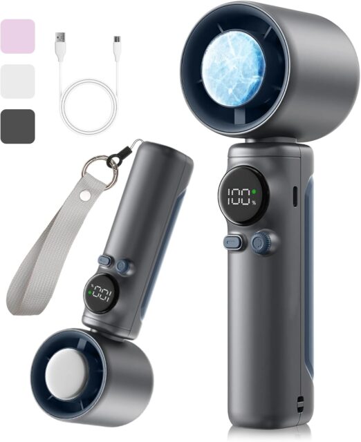 Amazonにて「Portable Fan, Handy Fan, Equipped with Cooling Plate, Built-in 5,000 mAH Battery, Rechargeable, USB1-100, Stepless Adjustment, Strap, Small, Portable, Handheld, Mini Fan, LCD Screen, Remaining Charge」が特価