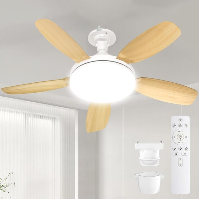 Amazonにて「SUKITEN Ceiling Fan Light, 44 W, 5,000 lm, Ceiling Fan, Ceiling Light Fan, 8-10 Tatami Mats, 180W Equivalent, Stepless Dimming Color, Remote Control, E26 Energy Saving, Light Bulb Color, Daylight」が特価