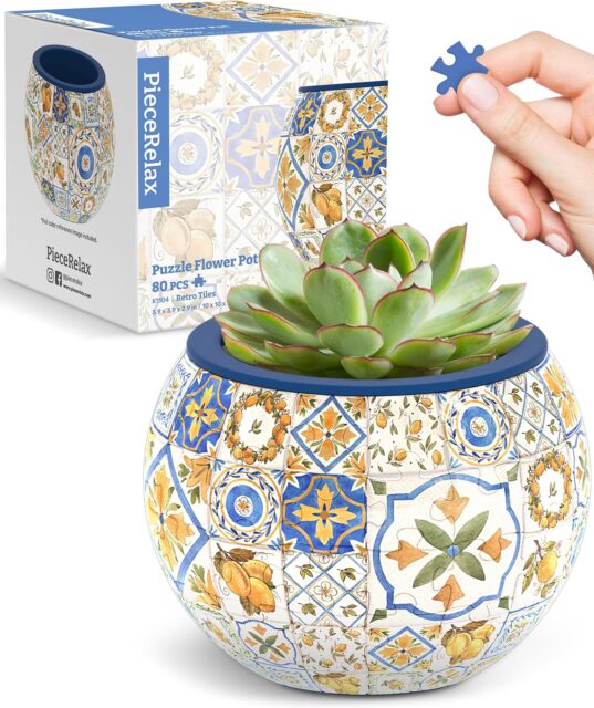 Amazonにて「PieceRelax K1104 80 Piece Plastic 3D Plazerpot Puzzle, Retro Flower Pattern, 3.9 x 3.9 x 2.8 inches (10 x 10 x 7 cm), Children’s Present, Pen Holder, Candy Can, Interior Decoration」が特価