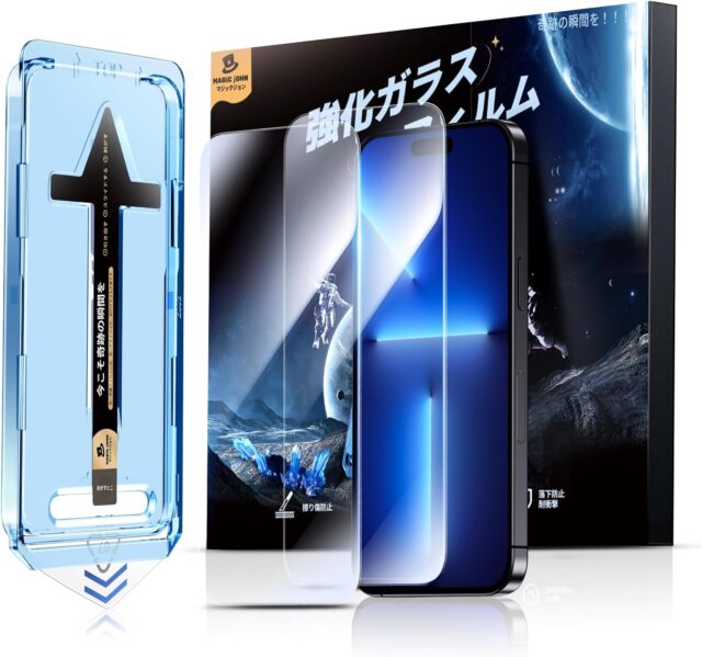 MAGIC JOHN Glass Film for iPhone 14 Plus / iPhone 13 Pro Max, Set of 2 with Guide Frame, Easy to Apply, Fingerprint, Shatterproof, Protective Film Scratch-Resistant”]