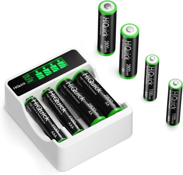 Amazonにて「HiQuick Rechargeable Battery, AA Charger Set, AAA Batteries, Rechargeable Battery Charger Set (4 AA Batteries + 4 AAA Batteries), LCD Included, Compatible with Nickel-Metal Hydride and NiCd Batteries,」が特価