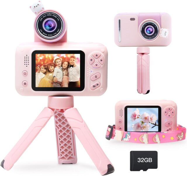 Amazonにて「Yukicam Kids Camera with Tripod, For Elementary School Students, 2.4 Inch Display, Digital Camera, Beginner, Compact Camera Toy, Gift for Kids, Video Camera Toy, 180° Rotating Lens, 3-10 Years Old,」が特価4190円で販売中です。