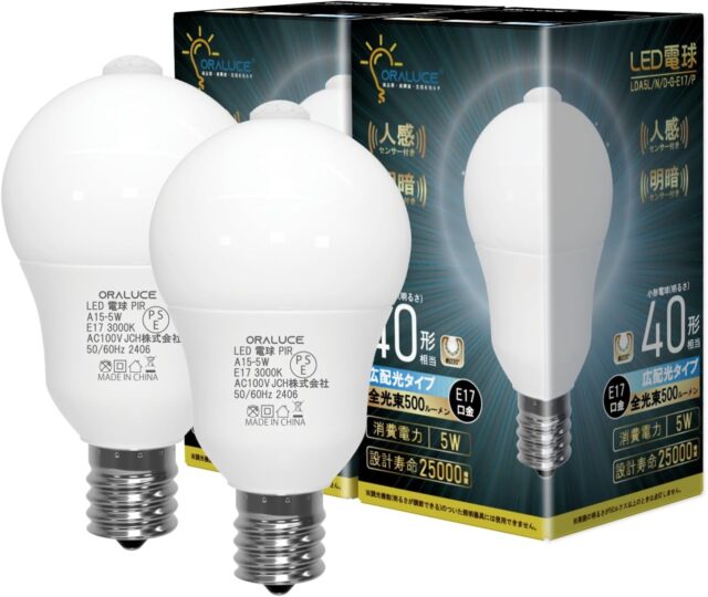 2199円が1613円!ORALUCE LED Light Bulb, E17 Base, Motion Sensor Bulb, 40W Equivalent, Bulb Color, 3,000K, 5W, 500 lm, Automatic On/Off, Light and Dark Sensor, Prevents Forgetting to Turn Off, Stairs, Entryways, #タイムセール #特価 #PR