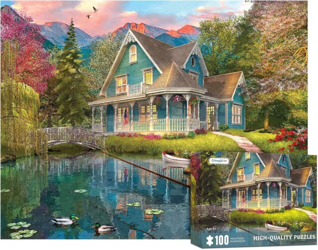 Amazonにて「CHengQiSM 100 Piece Jigsaw Puzzle, Large Piece, First View, Fishing, Lakeside Resort House, 100 Piece Puzzle, Scenery, Adults & Beginners & Elderly, Forest Scenery, Paintings, Leisure, Relaxed,」が特価