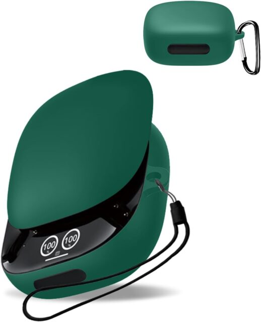 Wireless Earphone Case, Silicone Material, Easy to Wear, Shockproof, Waterproof, Dustproof, Washable (Includes Carabiner + Strap), Chargable,”]