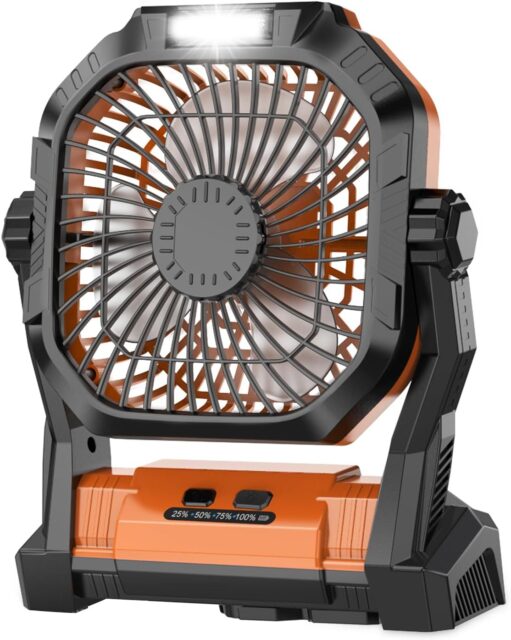 3980円が2679円!Camping Fan, Outdoor, Rechargeable, Tabletop Fan, 15,000 mAh, Large Capacity, 4 Levels of Air Flow Adjustment, High Brightness LED Light, Hanging, Rechargeable Fan, Cordless Use, Up to 25 Hours of #タイムセール #特価 #PR