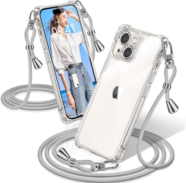 Amazonにて「iPhone 14 Case, Clear, Shoulder, Shockproof, iPhone14 Smartphone Case, Transparent with Woven Strap, Shoulder Strap, Neck Strap, iPhone 14 Cover, Rope, Single Shoulder Rope, Crossbody, Adjustable」が特価