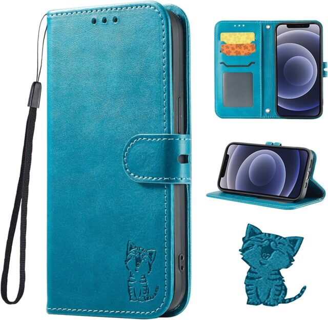 Amazonにて「iPhone 16e Case Notebook Type iPhone 16e Case Case Smiling Cat iPhone16e Smartphone Case with Strap Card Holder Stand Function (Compatible with iPhone 16e) Turquoise」が特価879円で販売中です。
