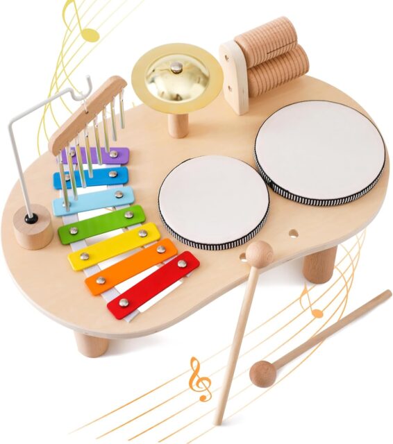 Amazonにて「let’s make Children’s Drum Set, Wooden Toys, Xylophone, Chime, Cymbal, Double Guillo, Play Player, Children’s Musical Instrument, Educational Toy, Percussion Instrument, Kids, Boys, Girls, 3, 4, 5」が特価