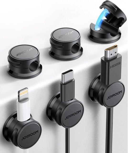 Amazonにて「Joyroom Cable Holder, Set of 6, Magnetic, Cable Clips, Wire Stop, Wire Organization, Cable Smoothly Adjustable, Around Desk, Cord Clip, Cord Holder, Stick, Strong Adhesive, USB Wire Storage, Tabletop,」が特価