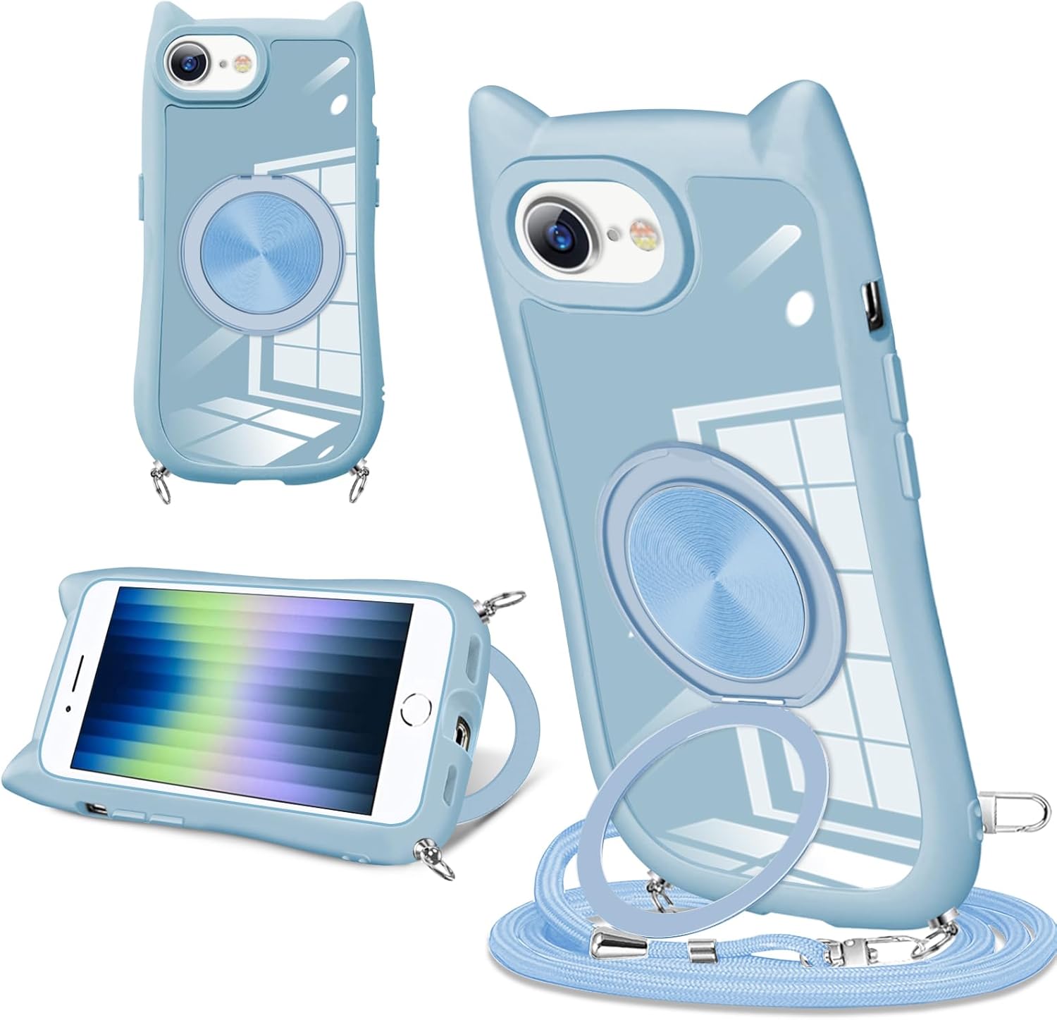 1395円が1325円!Smartphone Case for iPhone SE2/SE3/7/8, Cat Ear Design, Simple and Fashion, 360° Rotating Stand Included, iPhone SE2/SE3/7/8 Smartphone Case, Anti-Slip, Anti-Yellowing, Full Protection, Adjustable #タイムセール #特価 #PR