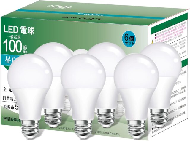 Amazonにて「LED Light Bulb, E26 Base, 12.3 W, 1580 LM, 100 W Equivalent, High Brightness, Daylight White Equivalent, 5000K, Wide Light Rendering Type, Energy Saving, Compatible with Shape Fixtures, General Bulbs,」が特価1937円で販売中です。