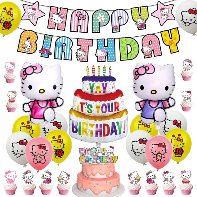 Amazonにて「Hello Kitty Birthday Decoration Set, Character, Birthday Decoration, Birthday Balloons, Happy Birthday Garland, Banner, Birthday Decoration, Aluminum Balloon, Birthday Decoration, Anime Party Balloons」が特価