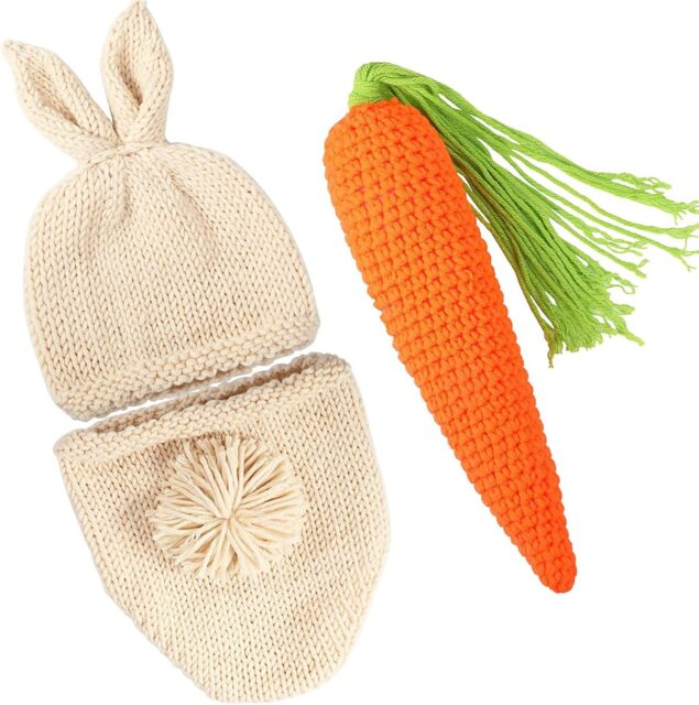Amazonにて「LIKENNY Rabbit Knit Hat Set, Sleeping Art Costume, 100 Day Celebration, Baby Costume, Photo Taking Tool, Baby Shower, Birthday, Commemorative Photo, Cute, Yarn, Hand Knitted, Unisex (Set of 3), Set of」が特価1279円で販売中です。