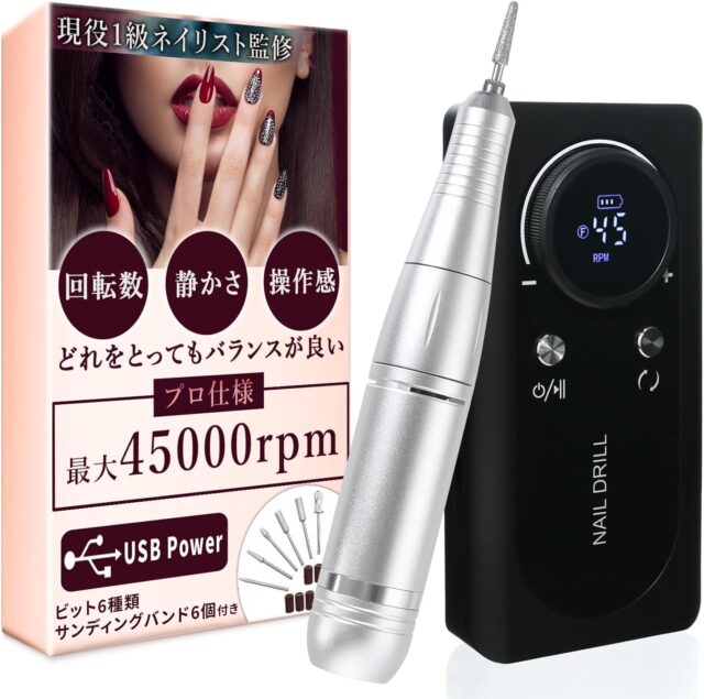 Amazonにて「Nail Machine Professional Nail Off Machine 0-45,000 Rotation Speeds 0 – 45,000 “Less Vibration Even at High Rotations! Professional grade with the convenience of cordless (Black)」が特価4401円で販売中です。