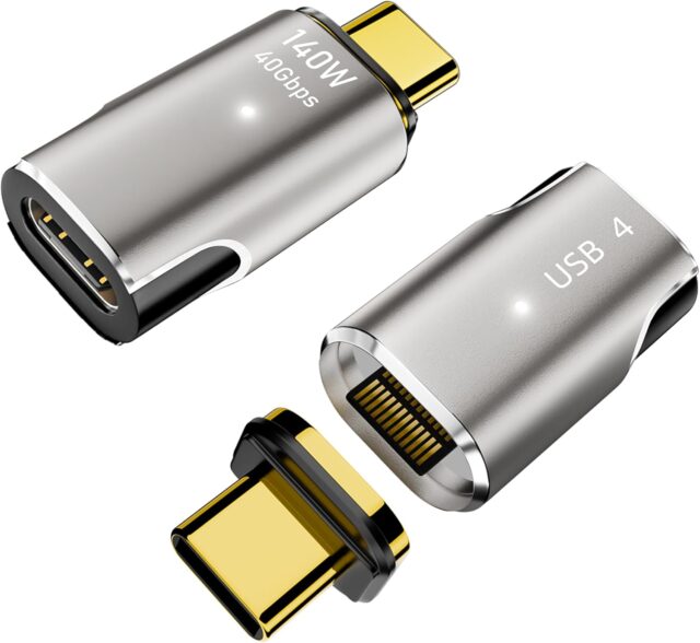 Amazonにて「MUXER USB C Magnet Adapter, 40Gbps USB4 High Speed Data Transfer, 140W PD Rapid Charge, 4K 120Hz / 8K 60Hz HD Video Signal Transmission, USB4.0 Type-C Magnet Male Female Converter, Supports USB-C」が特価1688円で販売中です。
