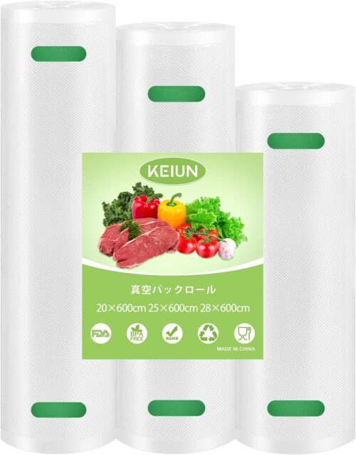 Amazonにて「KEIUN Vacuum Packaging Bag, Vacuum Pack Roll, 7.9 x 23.6 x 23.6 inches (20 x 600 cm), 11.0 x 23.6 inches (25 x 600 cm), 3 Piece Set – Vacuum Sealing Roll, Vacuum Sealing Bag, Dedicated Antibacterial」が特価