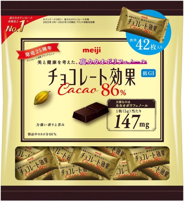 Amazonにて「Meiji Chocolate Kouka Chocolate Bars, Cacao 86%, Large Bag 7.4 oz (210 g)」が特価1191円で販売中です。