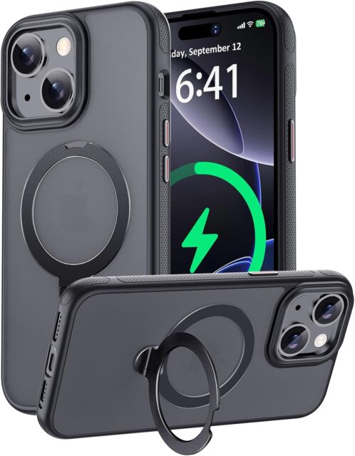 Amazonにて「iPhone 15 Case, MagSafe Compatible, Wireless Charging, Magnetic Ring, Fixed Point 360 Degree Rotating Stand, Shockproof, Durable, Anti-Yellowing, Anti-Slip, Drop Protection, Scratch-Resistant」が特価