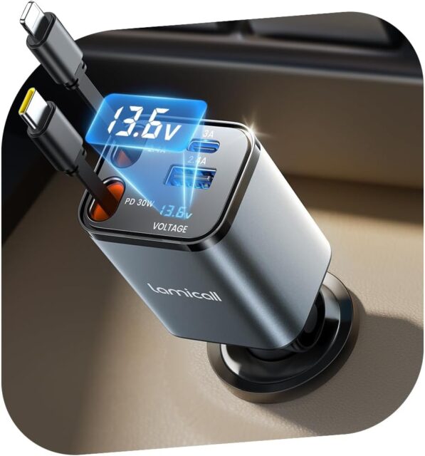 Amazonにて「Lamicall 4 in 1 Retractable Cigarette Lighter Socket, Car Charger: Total 69W, Type-C Rapid 4-in-1, Car Charger, 4 Devices Simultaneously, Supports 12/24V Cars, Visualization Voltage, 31.5 inches (80」が特価