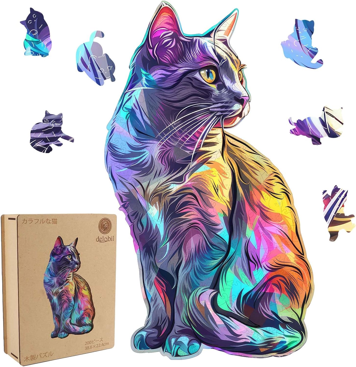 5690円が3593円!delobil Jigsaw Puzzle 200 Pieces [Colorful Cats] Unique Wooden Puzzle for Adults Difficult Family Game Decompression Fun Toy Puzzle Cat Christmas Birthday Thanksgiving Gift (38.6 x 22.4 cm) #タイムセール #特価 #PR