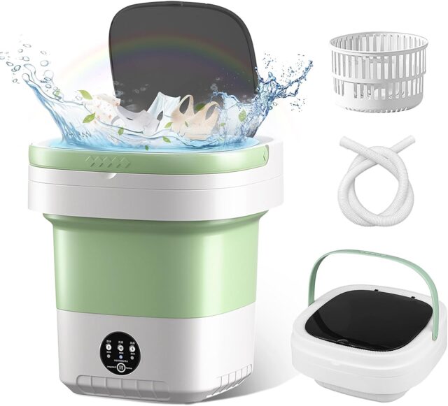 Amazonにて「Compact Washing Machine, Nara Lifestyle Popular Product, Folding, Portable, Large Capacity, 3.2 gal (12 L) Bucket, 3 Minutes of Dehydration, 5/10 Minutes of Washing, Blue Sterilization, Dust」が特価5999円で販売中です。