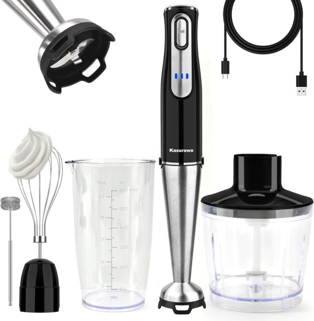 Amazonにて「Hand Blender, Convenient to Use Anywhere, Cordless Hand Blender, Rechargeable, Stepless Shifting, 7 in 1, Mixer, Food Processor, Whisk Combination, Cookware, Preparation, Smoothie, Soup, Mix」が特価