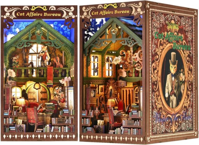 5500円が5225円!Booknook DIY Kit for Adults Wooden 3D Puzzle Story 3D Bookend Bookshelf Decoration Miniature Doll House Interior Goods Gift “Cat Office” #タイムセール #特価 #PR
