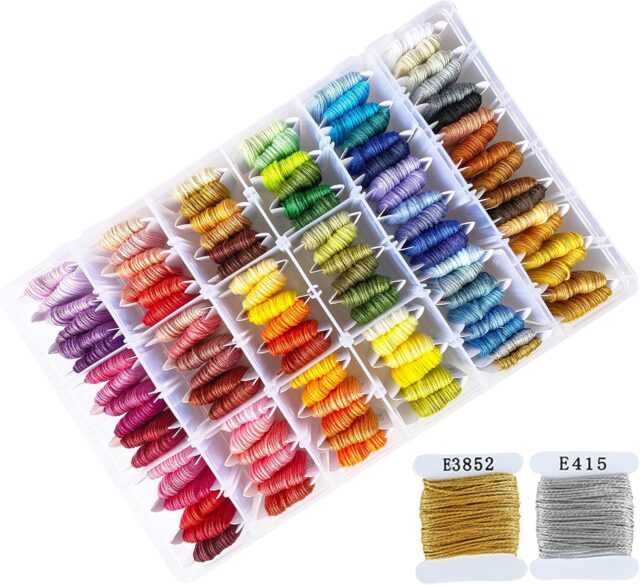 Amazonにて「Embroidery Thread Set, Storage Case, 108 Colors + Gold & Silver Included (No. 25, 8 Meters, 6 Spells, Card Spool) Spools」が特価2480円で販売中です。