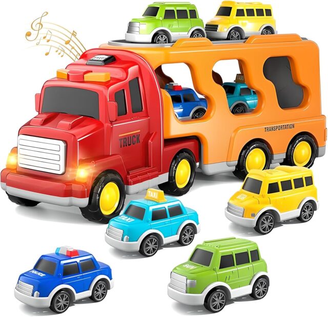Amazonにて「Car Toy Construction Vehicle Set, Truck, Minicar, 2, 3, 4, 5, 6 Years Old, Boys, Girls, Carrier Car, Trainer, Light and Sound, Indoor Play, Boys Rankings, Birthday Gift, Christmas, Orange, Red,」が特価