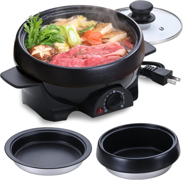 Amazonにて「Avitelux Electric Hot Pot, Electric Grill Pot, Electric Mini Plate, For 1 Person, 2-in-1 Boil, Baking, Small, Living Alone, Deep Pot, Stylish, Removable, Washable, Fluorine Processed, Red, Black」が特価3510円で販売中です。