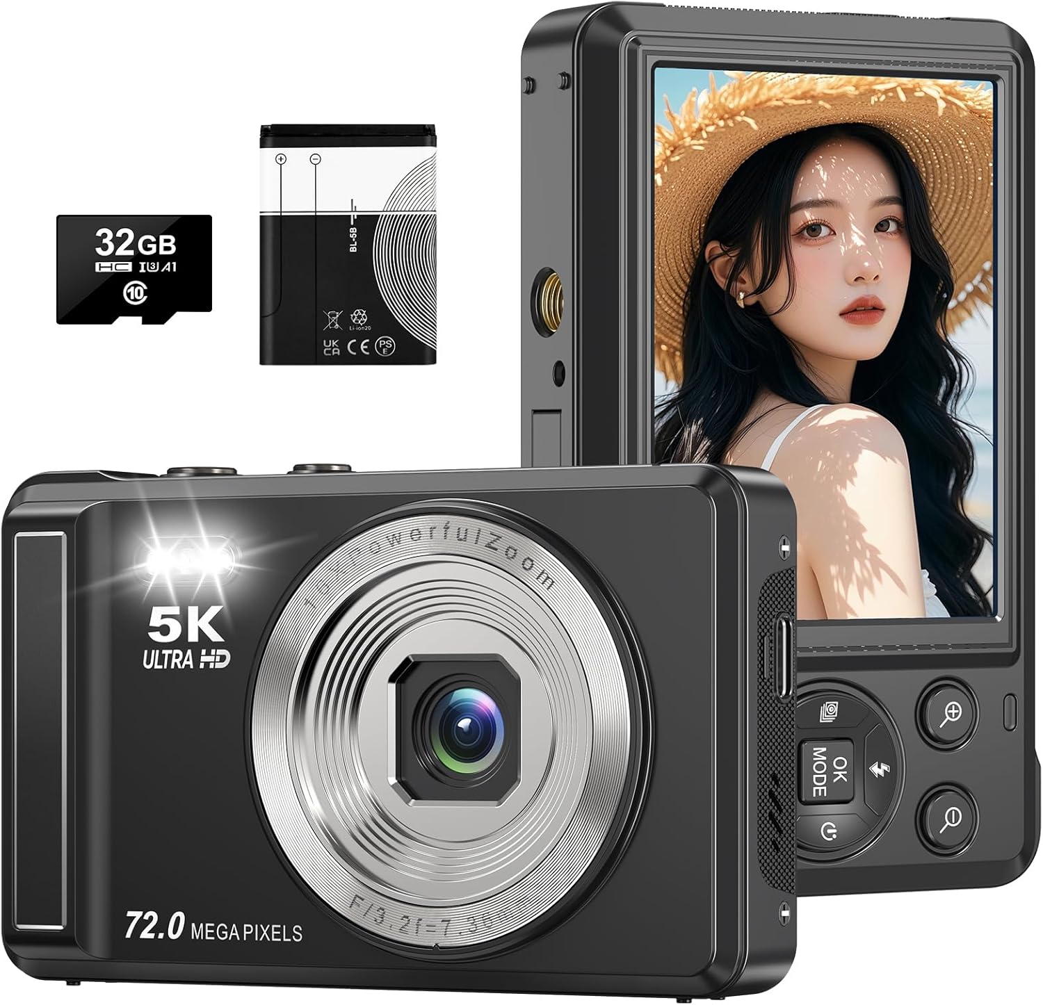 7999円が4999円!5K Digital Camera, 72 Megapixels, Digital Camera, AF Autofocus, 2.8-Inch Screen, 16x Digital Zoom, Time Shooting, Built-in Flash, Selfie, Micro SD Card Included, Compact, VLOG, For Beginners #タイムセール #特価 #PR