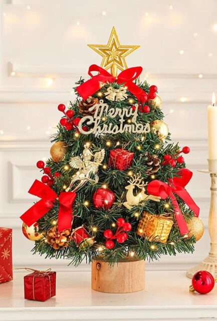 Amazonにて「(2024 New Release) Christmas Tree, Tabletop, Stylish, Mini Tree, Scandinavia, LED Light, 17.7 inches (45 cm), 23.6 inches (60 cm), Easy Assembly, Battery-operated, Tabletop Tree, Small, Gold,」が特価