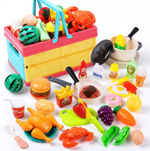 Amazonにて「HOLYFUN 6005 Kudamono Educational Toys, 48-Piece Set, Pretend Play, Folding Basket, Realistic Food, Fruits and Vegetables, Cutting Play, Kitchen, Pot, Pretend Cooker, Cooking Play Set, Parent and」が特価