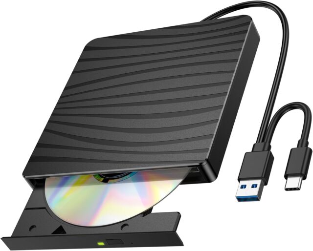 Amazonにて「2025 Model, Low Noise, External DVD Drive, Zebra Pattern, USB 3.0/2.0 & Type-C Compatible, High Speed 8X, DVD, 24X, CD Writing/Reading, Thin, Lightweight, Bus-Powered, Optical CD/DVD Drive, Windows」が特価