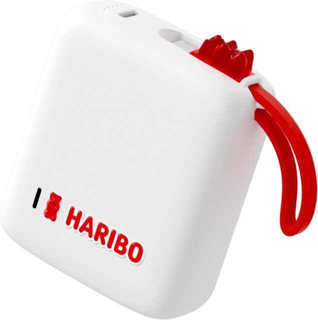 Amazonにて「Haribo Mini Mobile Battery 10000mAh 22.5W Fast Charging, Built-in Cable, Compact Size, 5V 3A, Gummy Bear Design, Compatible with iPhone 15 and 16 Series, Galaxy, Xiaomi, Pixel, Xperia」が特価