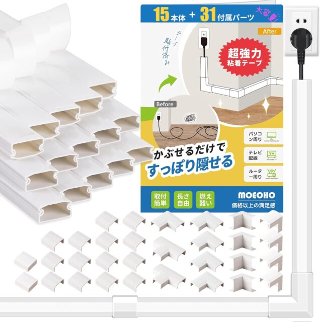 Amazonにて「Wire Cover, Cord Concealing, Cable Cover, Wide Variety of Parts, Tape pasted, Choose from Sizes, Wire Molding, Cable Cover, Wire Concealing, Power Cords, Molding, LAN Cables, Easy Installation, Free」が特価