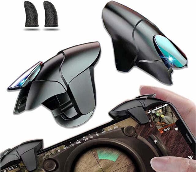 Amazonにて「AIYUJIWU スマホ コントローラー 荒野行動 PUBG Mobile 最新型 スマホゲーム パッド クリック感 高感度 ジョイスティック 射撃ボタン 高速反応 左右兼用 連続射撃 電源ボタンと干渉しない 無段階調整 ケース対応 iphone/Sharp/Samsung/Xperia/Android 各種ゲーム対応可能 【2個パック】 (ブラック)」が特価