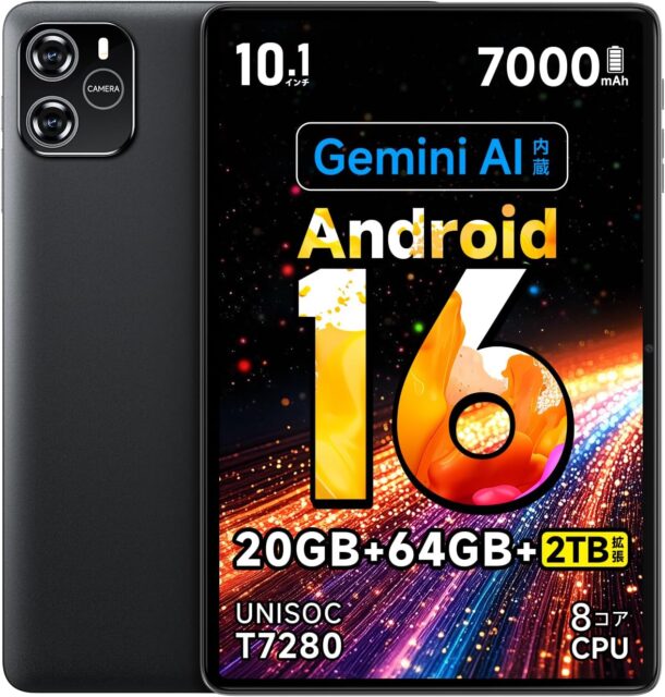 Amazonにて「Android 16 Tablet, 10-inch Wi-Fi Model, 8 Core, Widevine L1, Face Recognition, Screen Split, Wireless Projection, Child Protection, Gemini AI Type-C OTG and GMS Certified, Watching Games/Videos, Line」が特価