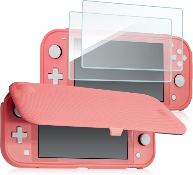 Amazonにて「ProCase Switch Lite Flip Case [with 2 Glass Panels] Slim Clear Soft TPU Cover Shockproof Protective Cover Compatible with: Switch Lite 2019 – Coral」が特価1189円で販売中です。